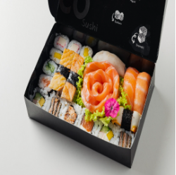 peças com sabores variados 04- sashimi 09- uramaki 09- hossomaki 06- niguiri04- gunkan 06- gunkinhas 06 -acelgamaki15- hot's 02- saladas sunomono